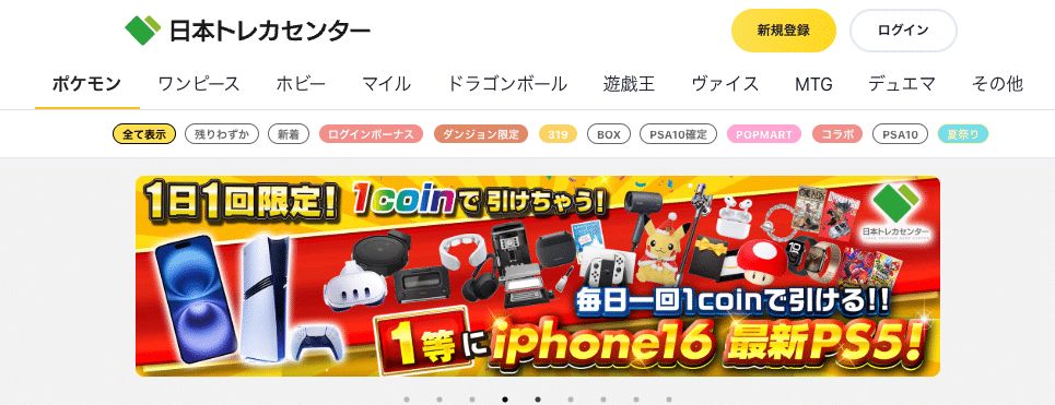 日本トレカセンター | 【高還元率かつ豊富なラインナップ】 ・1口1coinから回せる低額オリパもある ・ジャンル豊富で好みのオリパが見つかる ・多様な支払い方法が選択できる 日本トレカセンター公式サイト > |